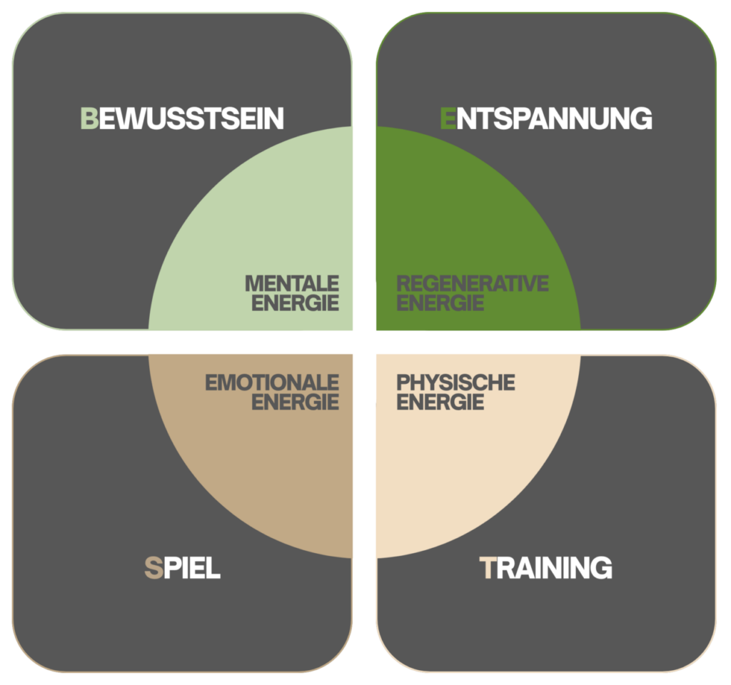 B-E-S-T IMPULS bringt vier mal mehr: Entspannung, Training, Spiel und ein geschärftes Bewusstsein für den Rhythmus von Leistung und Erholung. Diese vier Impulsqualitäten sprechen sämtliche Körperzellen an und sorgen für eine epigenetische Aktivierung.
